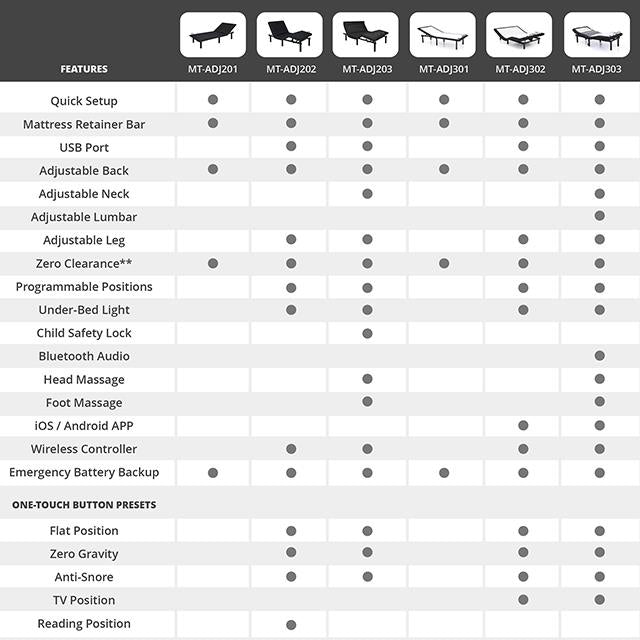 • One-Touch Presets: Flat, Zero Gravity, Alleviate Snoring