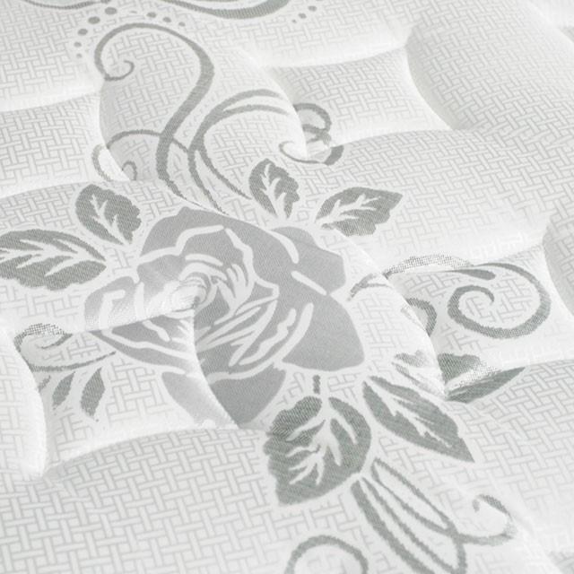 • Quilting: White Fabric With Grey Flowers. Multi Needle 5 Layer Quilting 0.5 oz. Fire Guard Barrier