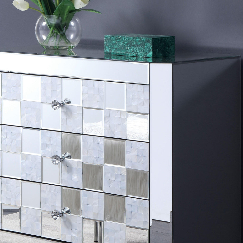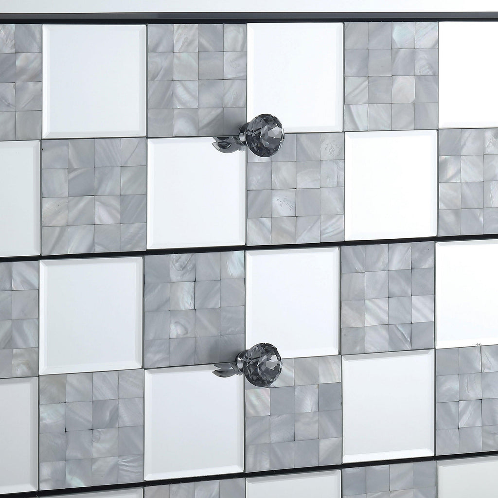 Using a stunning iridescent material derived from clam shells, this side table gives you a lavish checker patterning of slick... Using a stunning iridescent material derived from clam shells, this side table gives you a lavish checker patterning of slick reflective material. This is compact, dazzling and stylish accent piece. View more