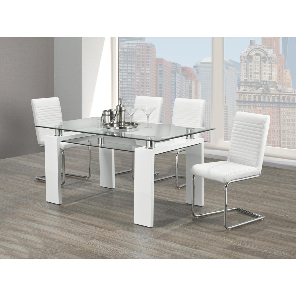 Tempered glass with glossy white and Chrome accent legs
