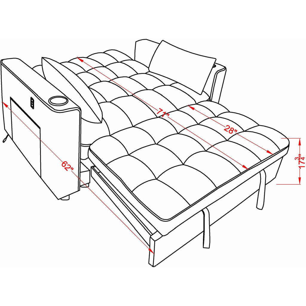 • Bed position: 71"L x 57"W x 18"H