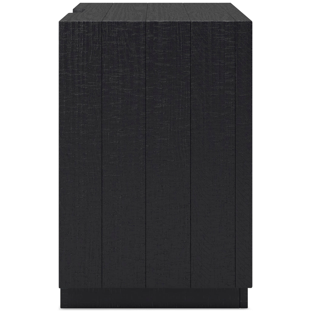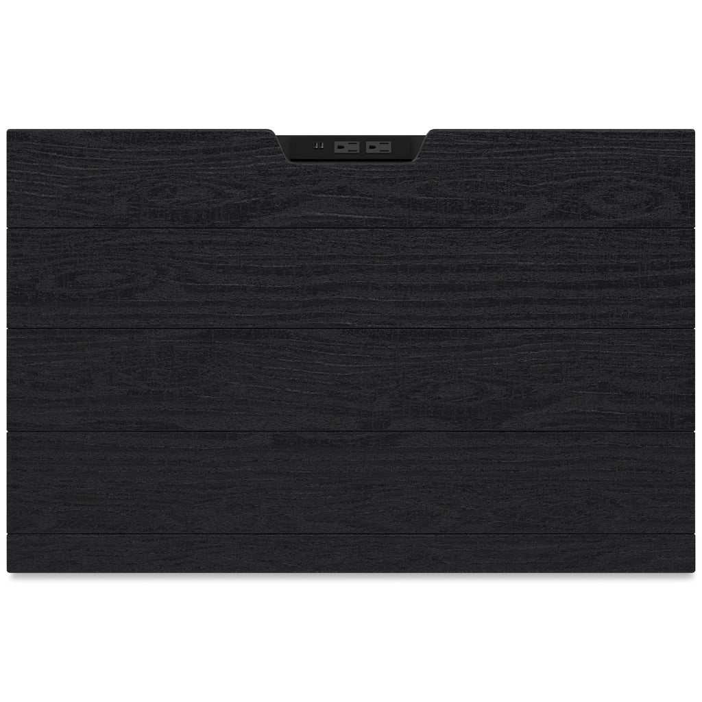 • Textured black wood stain with waxy topcoat