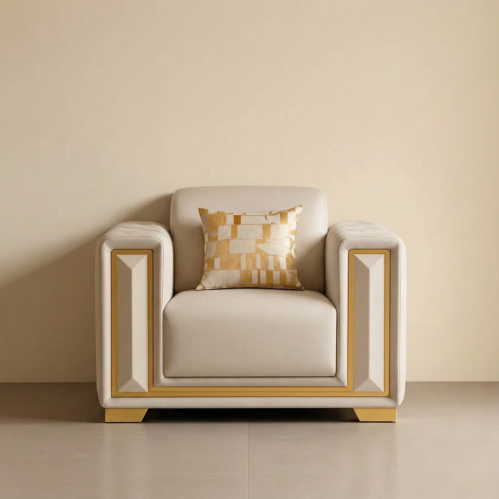 Sofa set - Beige leather - SF 3001 - 2 PC