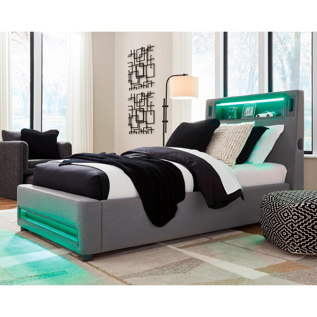 • Multicolored ambient LED lighting in headboard and lower footboard rail