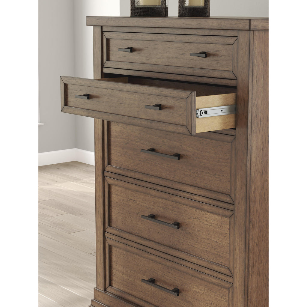 • 5 smooth-gliding drawers with fully finished interiors, French/English dovetail construction and heavy-duty ball-bearing side glides