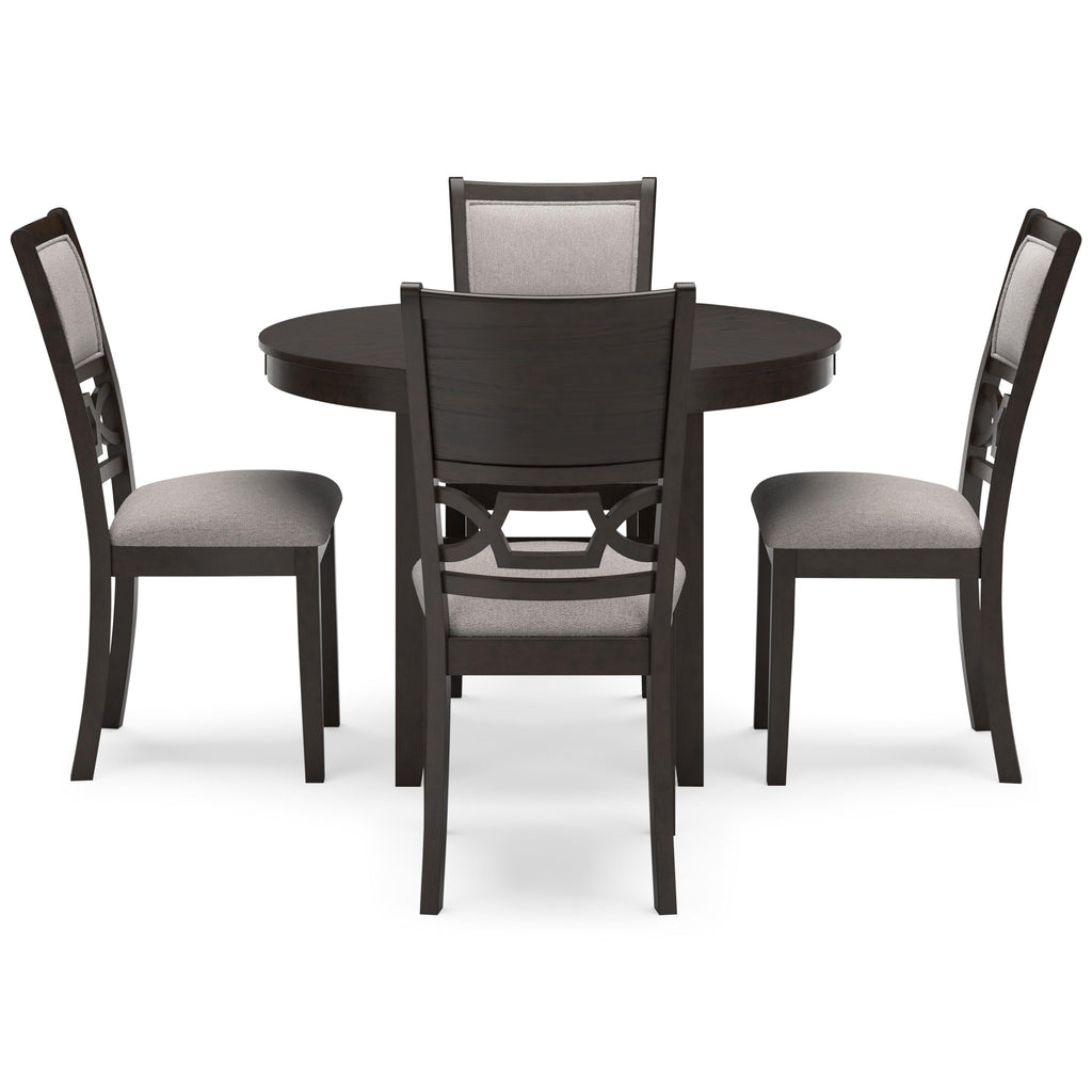 • Includes dining table and 4 upholstered chairs