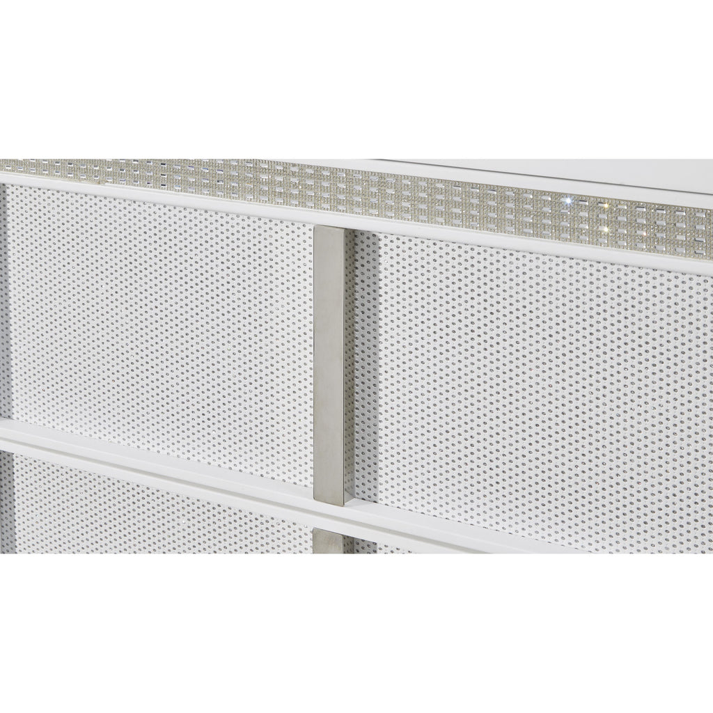 • Drawers with rhinestone frames; textured laminate drawer fronts