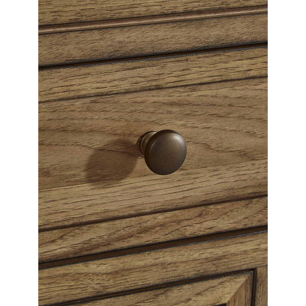 • Dark bronze-tone drawer pulls