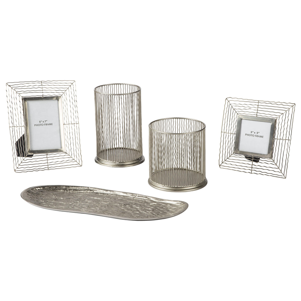 • Includes 2 candle holders, 2 photo frames and tray