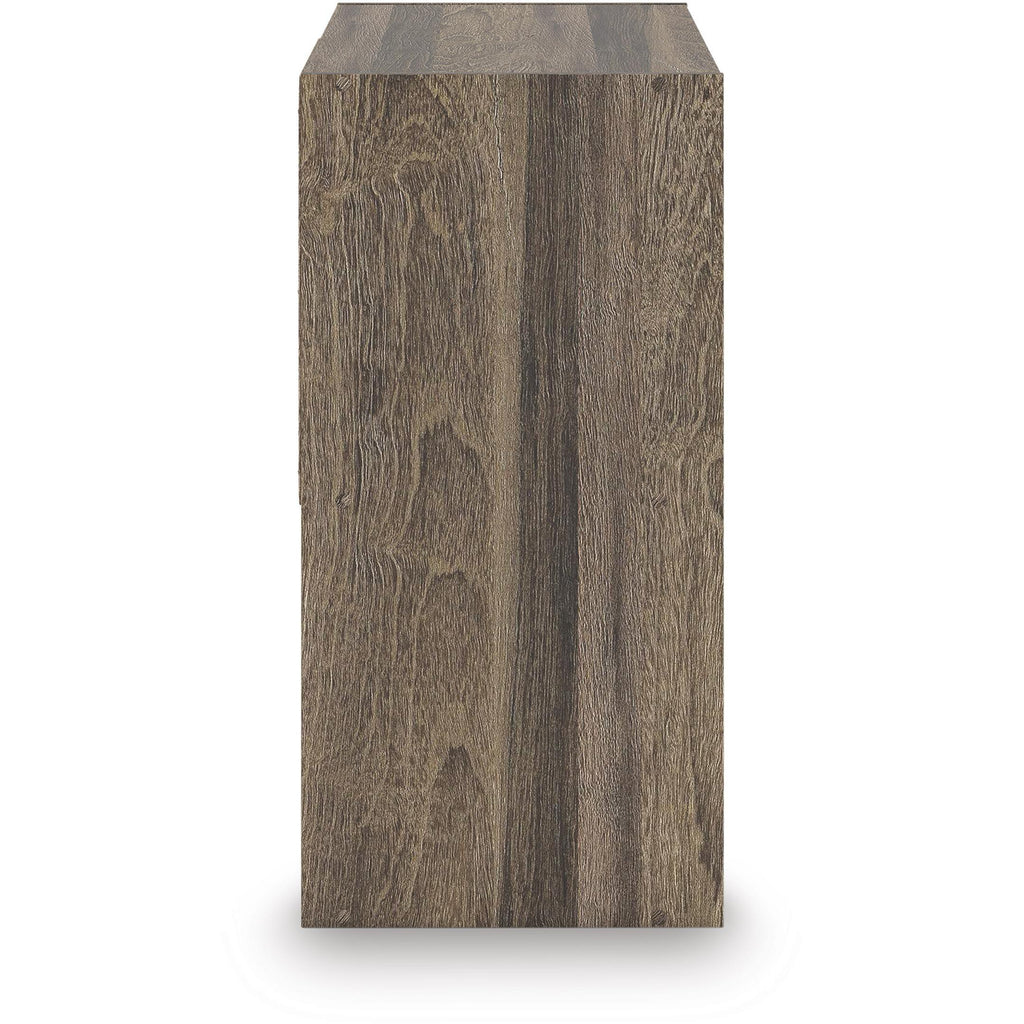 • Weathered brown finish over replicated oak grain with authentic touch