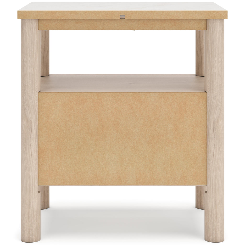 • Drawer interior is lined with a faux linen laminate for a clean, finished look