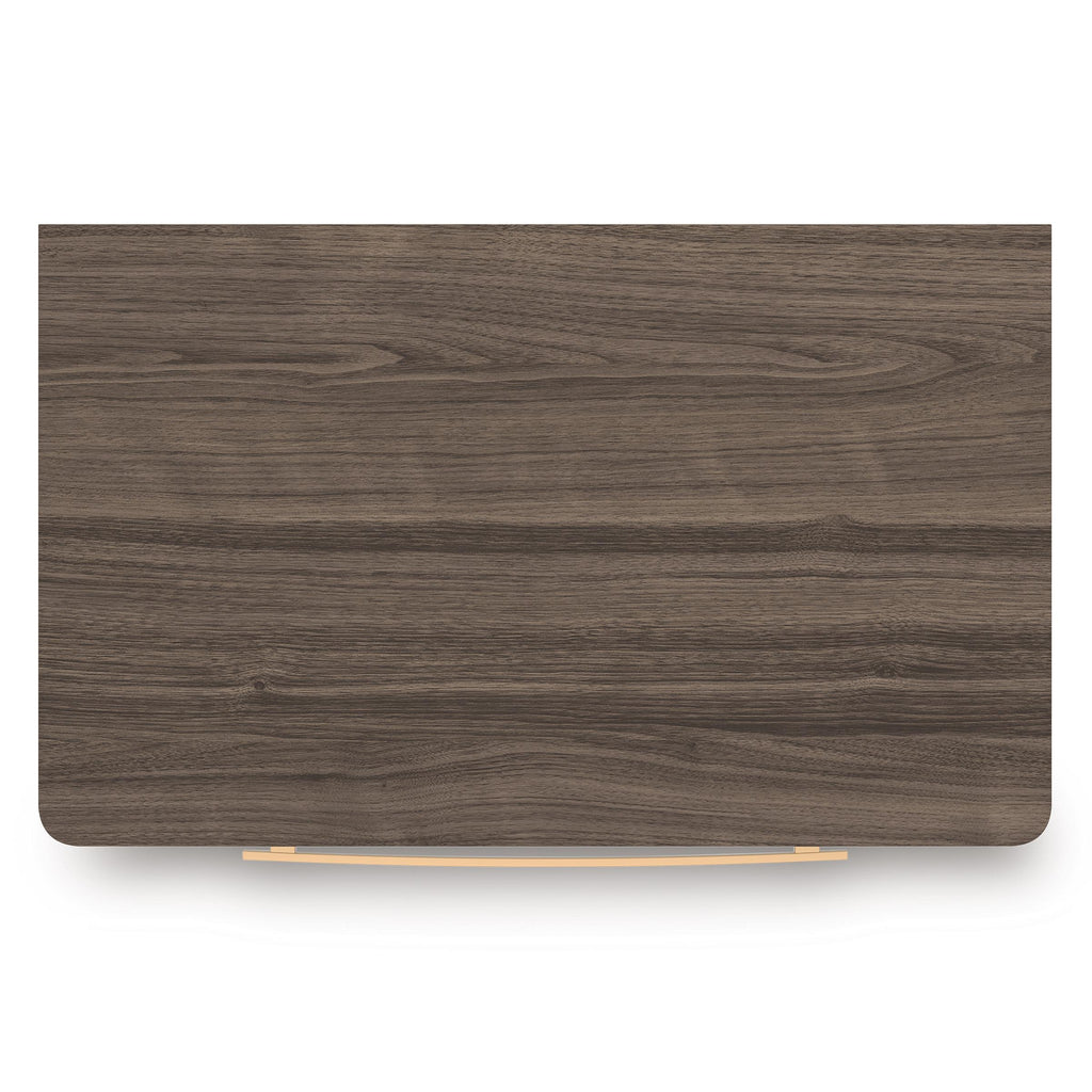 • Two-tone finish (dark brown finish over replicated walnut grain; matte white finish)