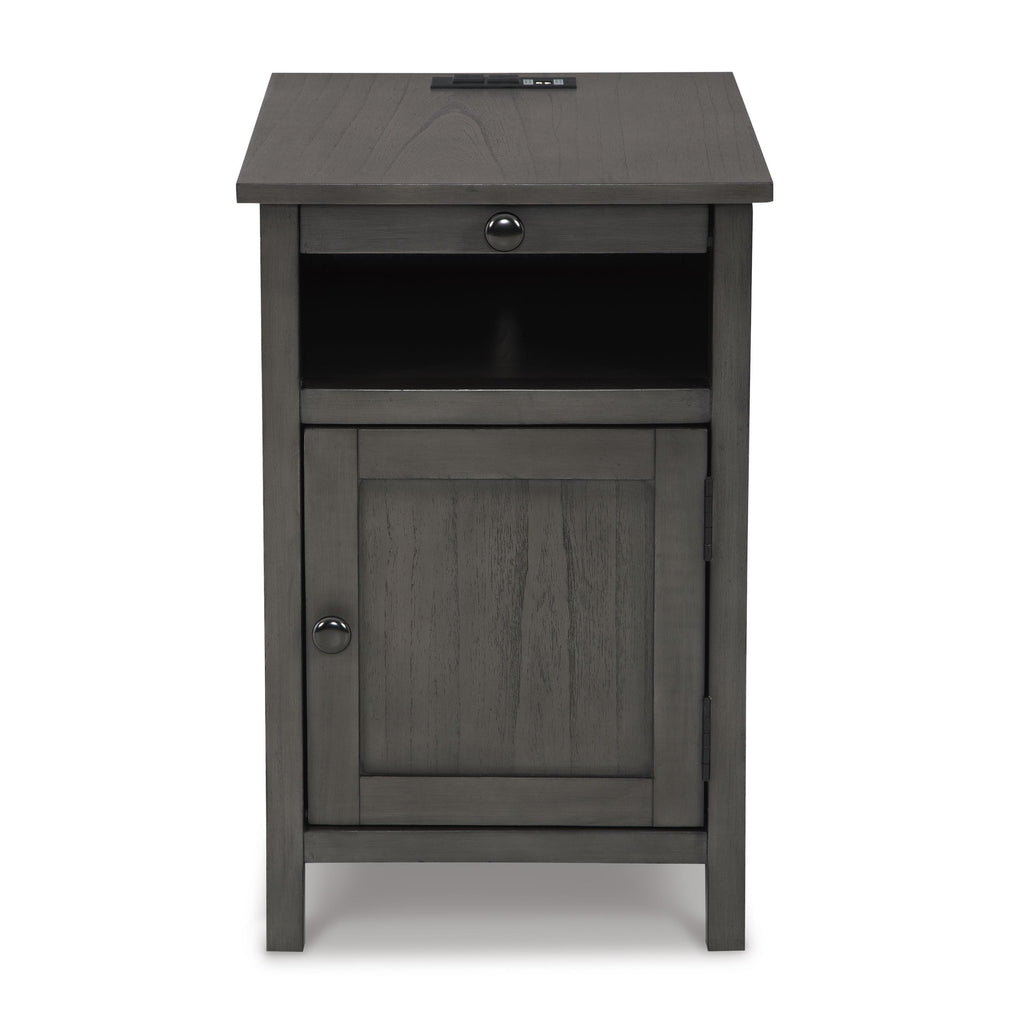 • Table features storage cabinet, open cubby shelf and pull-out tray