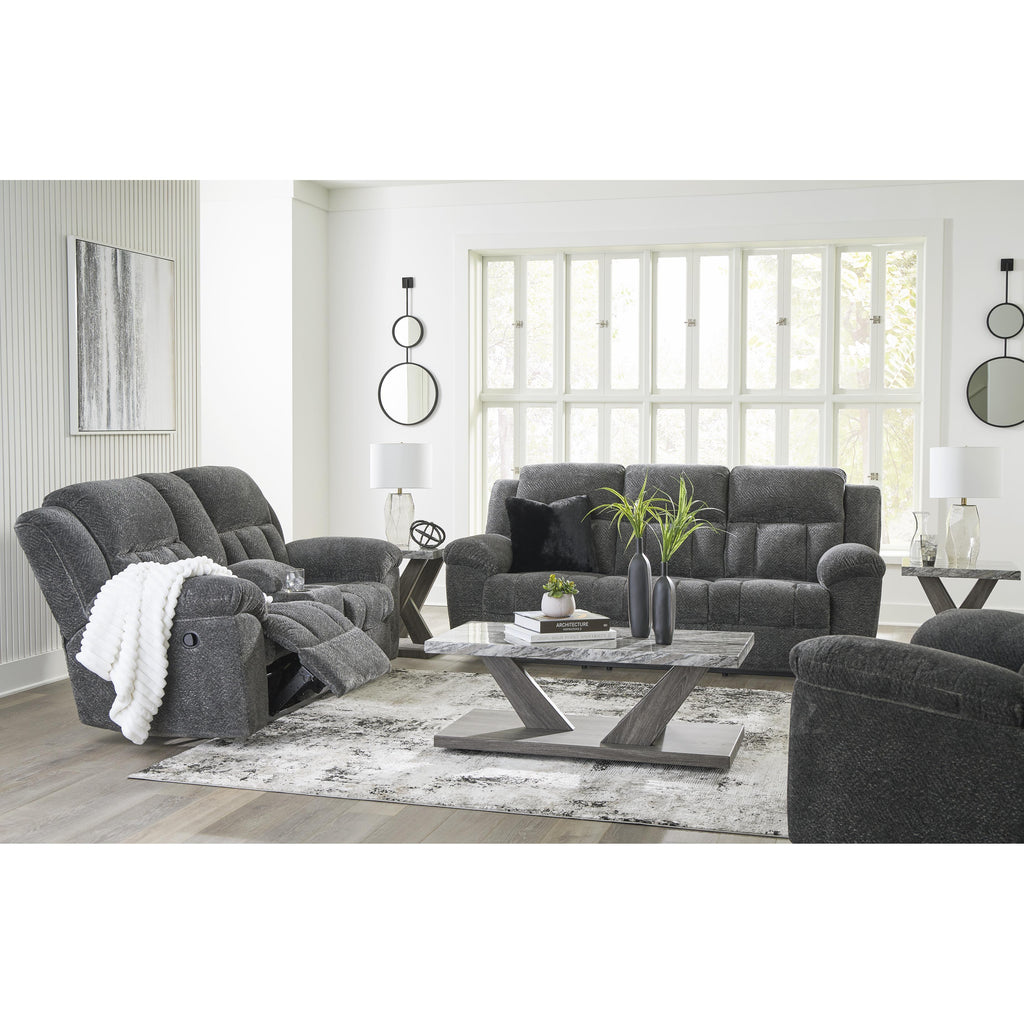Calgary Furniture Emporium Frohn Reclining Fabric Loveseat with Console 3740694C