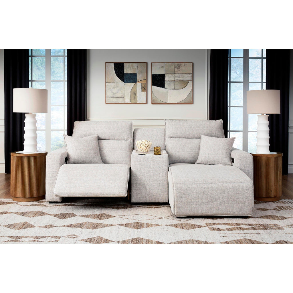 • Includes 3 modular pieces: left-arm facing power recliner, console and right-arm facing power chaise