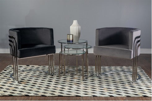 Silver Stainless Steel Frame  Black Velvet or Grey Velvet  24” x 22” x 29.5” H  34-060 Silver
