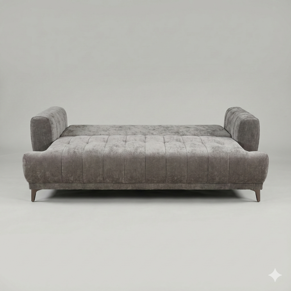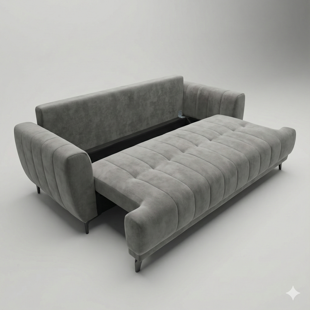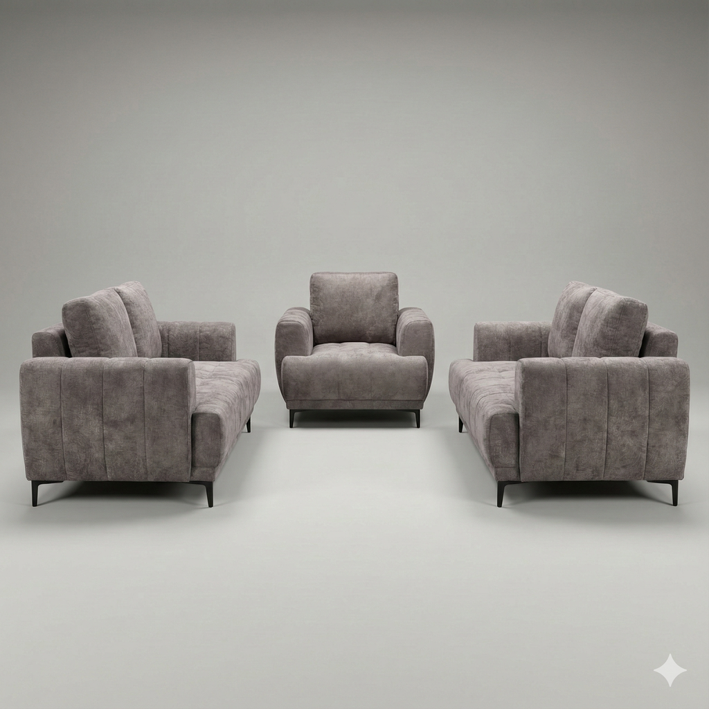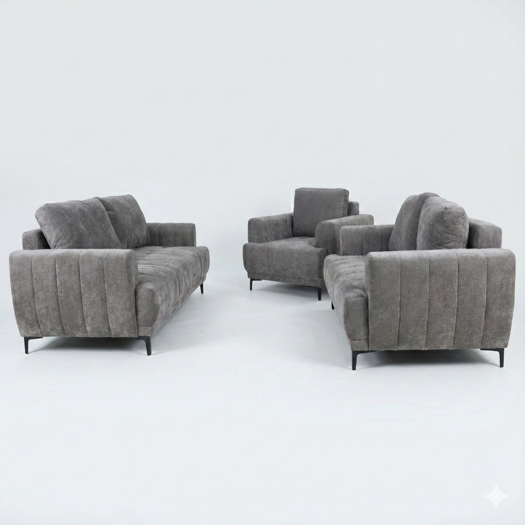 Experience the perfect blend of modern luxury and practical versatility with this 3-piece living room set. Designed with a "cloud"... Experience the perfect blend of modern luxury and practical versatility with this 3-piece living room set. Designed with a "cloud" comfort philosophy, this suite features plush, deep seating that invites you to sink in and relax. The set includes a spacious 3-seater sofa, a cozy loveseat, and a matching armchair, all upholstered in a premium soft-touch performance fabric that stands up to daily family life while remaining velvety soft. The standout feature is the 3-seater sofa, which effortlessly converts into a comfortable bed, instantly transforming your living space into a guest room for overnight visitors. Visually stunning, the set boasts vertical channel tufting on the wide arms and biscuit-tufted seats, all resting on sleek black metal legs for a contemporary finish. It is the ultimate solution for those who want high-end style without sacrificing functionality. View more