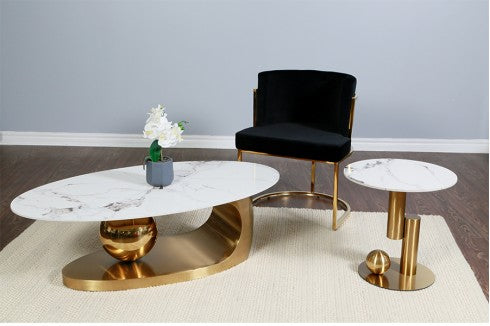 Gold Stainless Steel BaseCeramic Table TopSoho Coffee Table51” x 27.5” x 17.5” H53-030 Soho Side Table19.5” dia. x 19.5” H53-0312