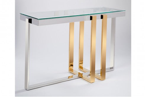 Silver & Gold Stainless Steel Base Clear Tempered Glass Top 47.5” x 16” x 31” H 34-074